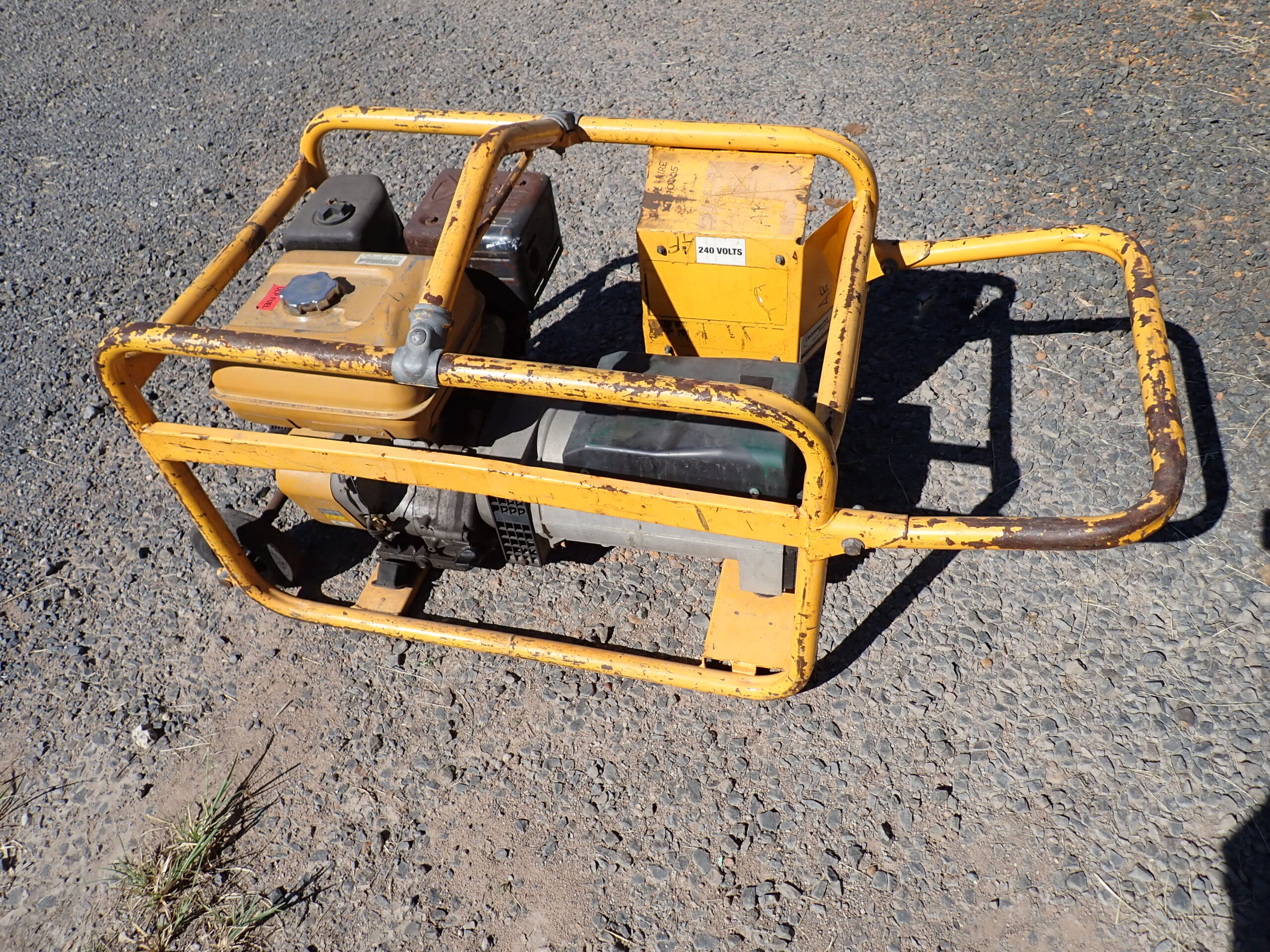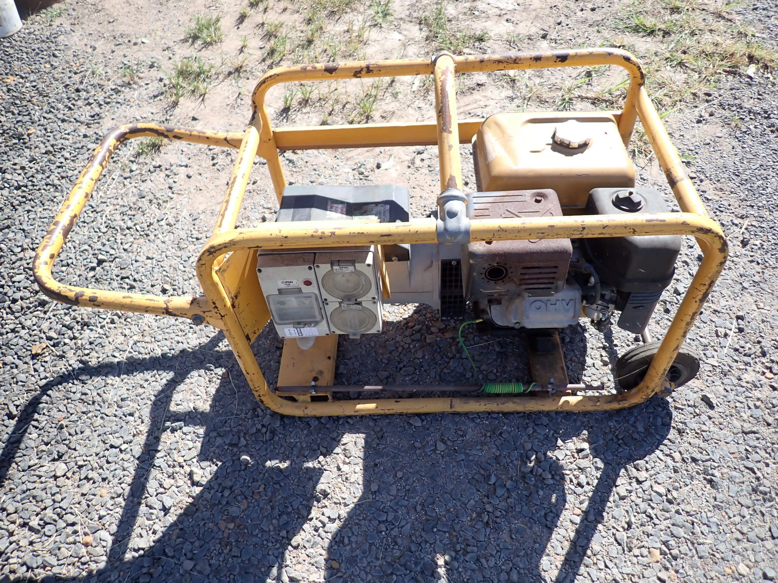 Generator 8 KVA Crommelins, Subaru/Robin petrol, in frame with lift lug and handle and 2 wheels, 1 x 10 Amp and 1 x 15 Amp 240 Volt outlets with RCD, starts and works well.