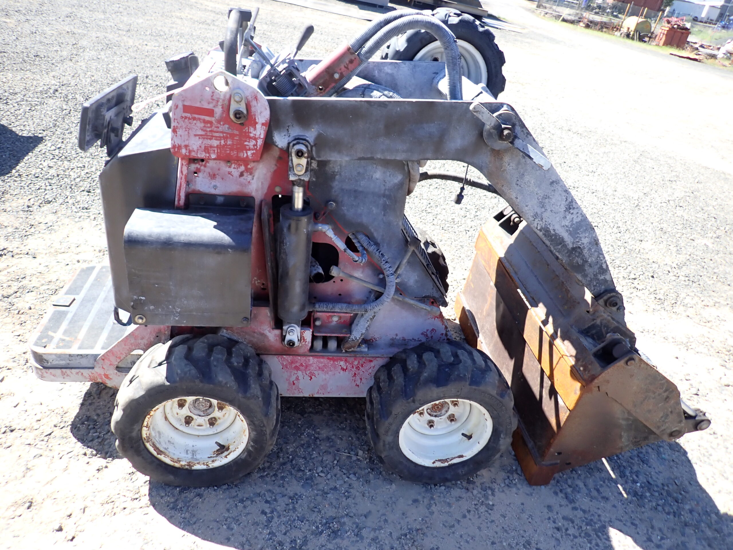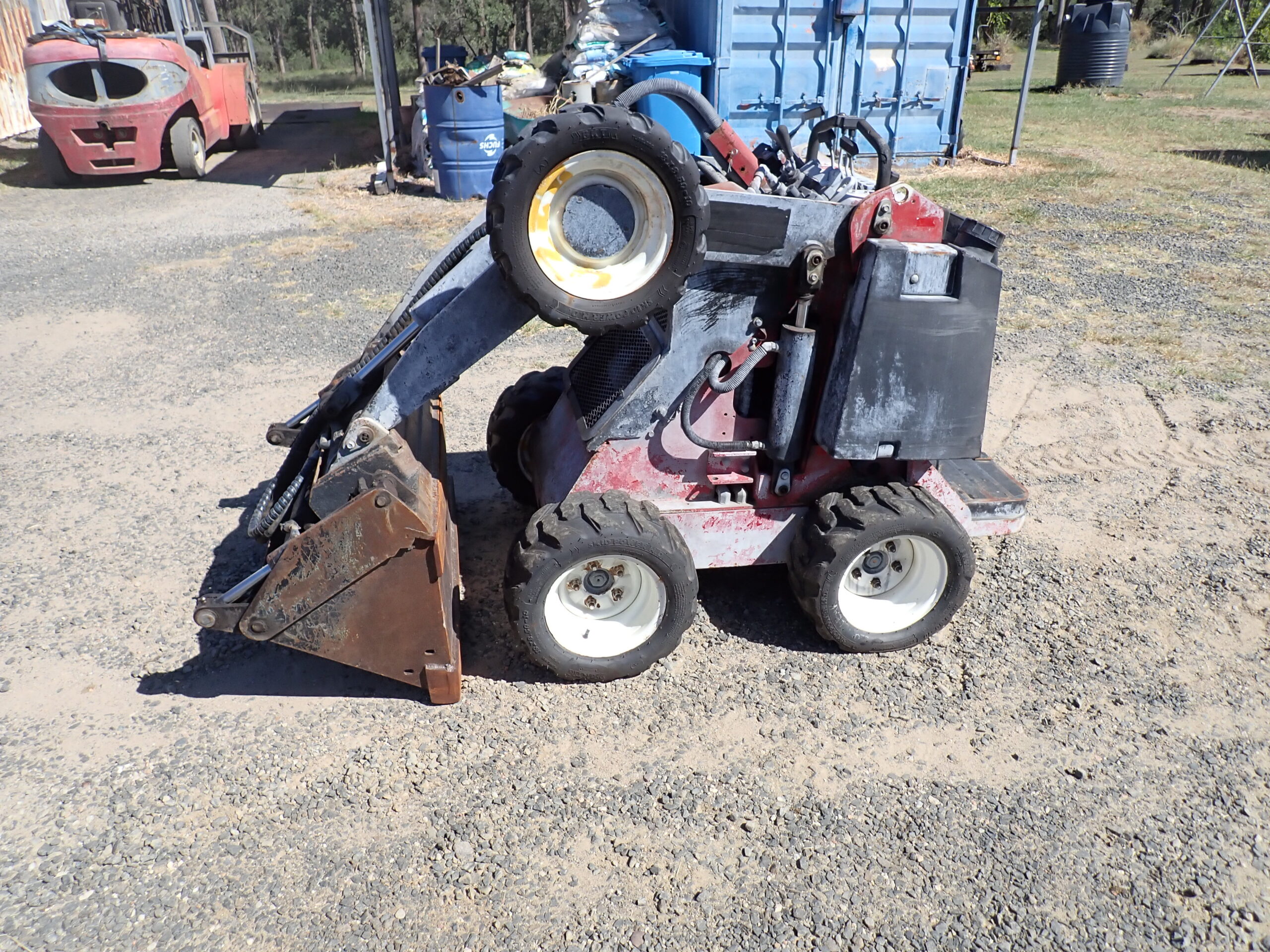 Toro W320D mini skid steer wheel loader, 2016 build, 1380 hours, 4 in 1 bucket, quick hitch, 20 HP Kubota diesel, spare tyre and wheel spanner, starts and operates well.
